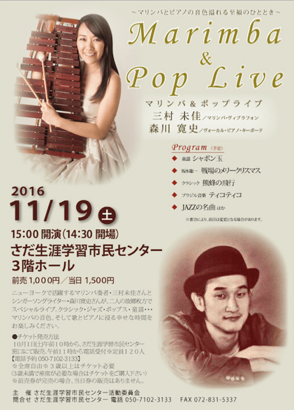 催し物 夢尺八・マリンバ・ジャズピアノ コンサート