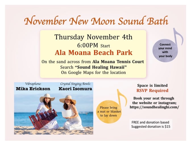 February Sound Bath presented by Sound Healing Hawaii @ Ala Moana Beach